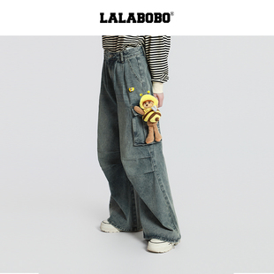 宽松显瘦深蓝色阔腿裤 新款 子 女2025年冬季 逸阳加绒加厚直筒牛仔裤