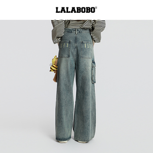 森马牛仔裤 舒适保暖阔腿裤 女冬季 2025新款 加绒做旧长裤 商场同款
