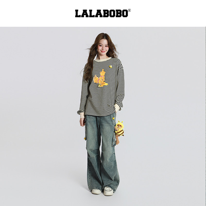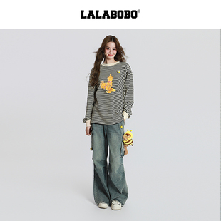 小个子高腰显瘦马蹄喇叭裤 拉夏贝尔侧开叉加绒微喇牛仔裤 女秋冬季