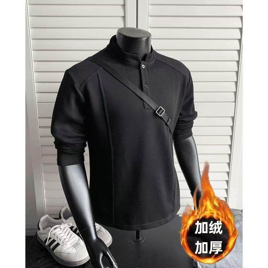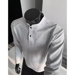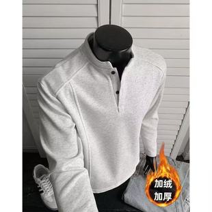 上衣A 保暖男士 GV真维斯灰色加绒卫衣男款 秋冬加厚圆领外套男冬季
