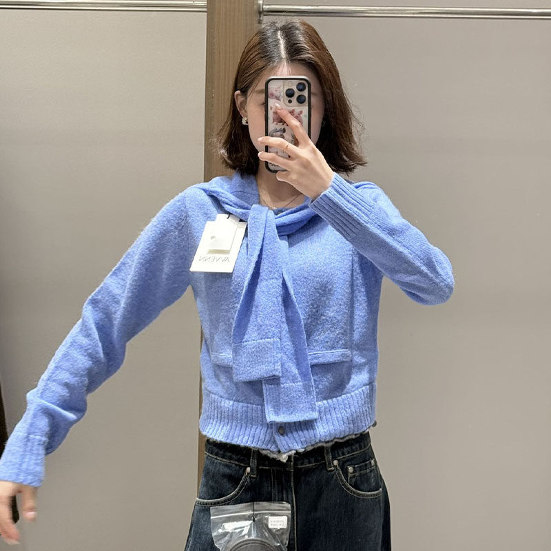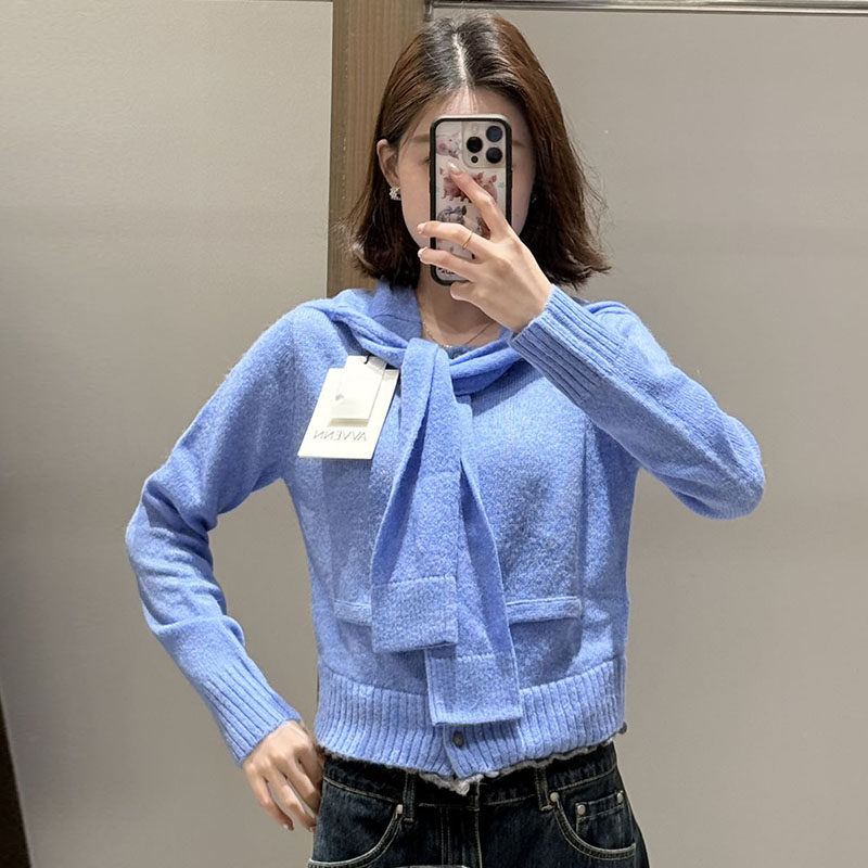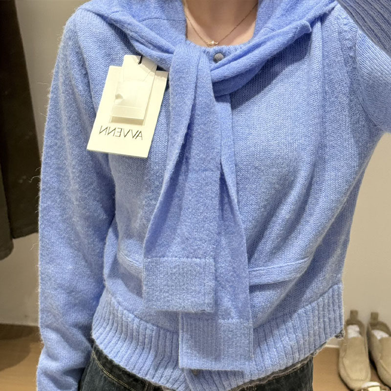 AVVENN真两件造型感披肩立体绣花logo细节针织短开衫 现货