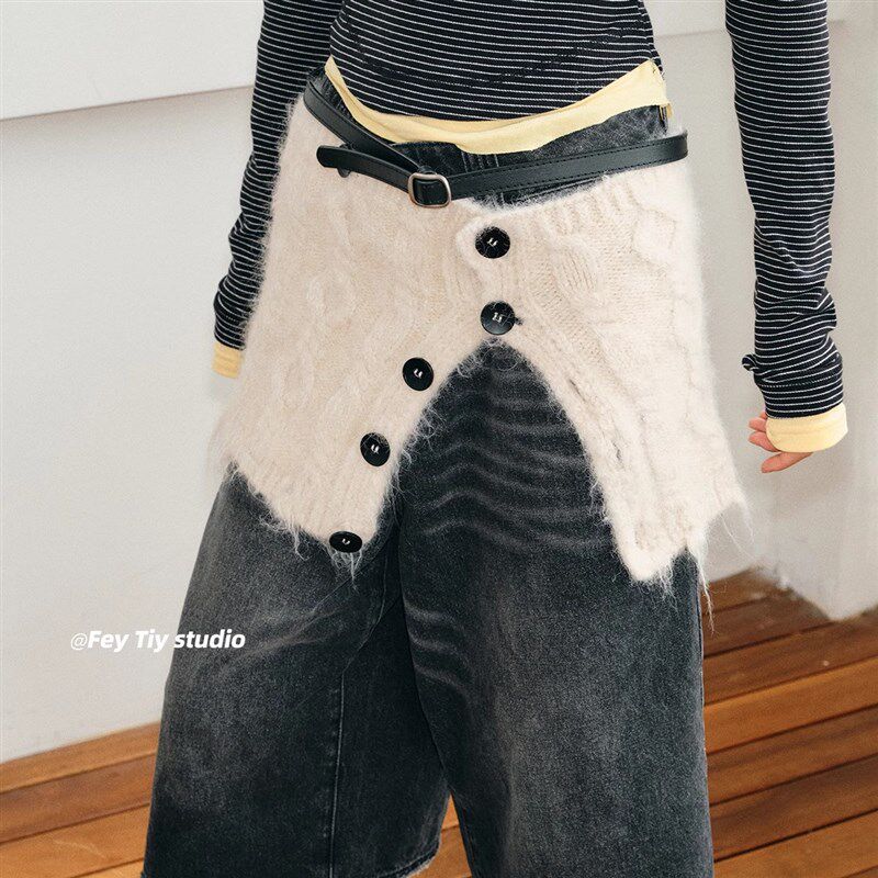 feytiy 毛边叠搭毛线裙帘子秋冬保暖针织半身裙屁帘女 韩国设计款