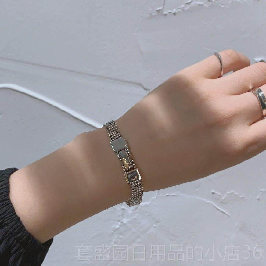 马蹄扣925纯银镀18k金镶钻钢丝手链女情侣手绳手镯男 明星同款