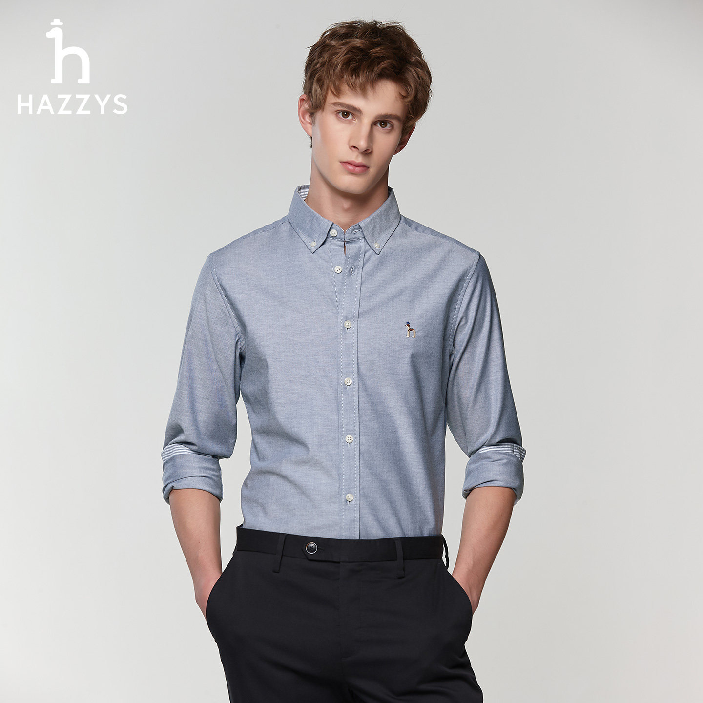 春夏甄选 休闲时尚 Hazzys哈吉斯春季 长袖 通勤衬衣潮流上装 男款