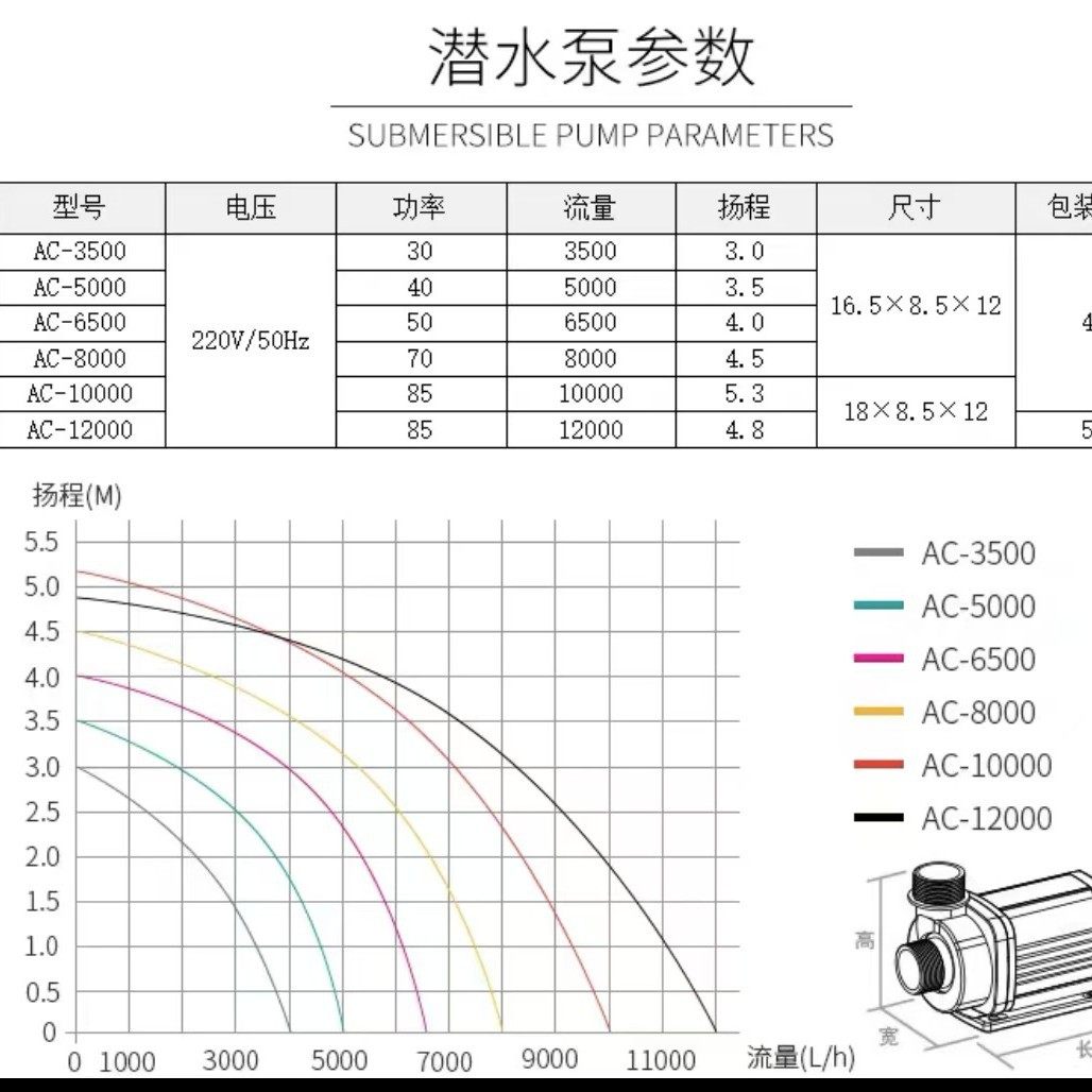 10000 5000 12000变频水泵水族箱鱼缸循环潜水泵 3500 捷宝AC