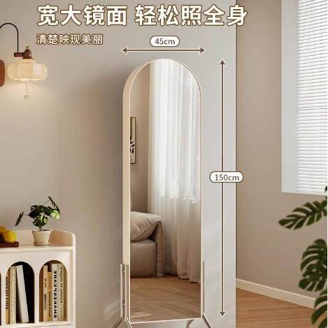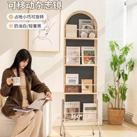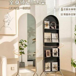 奶油风全身镜可移动旋转穿衣镜卧室试衣镜客厅杂志架家用落地镜子