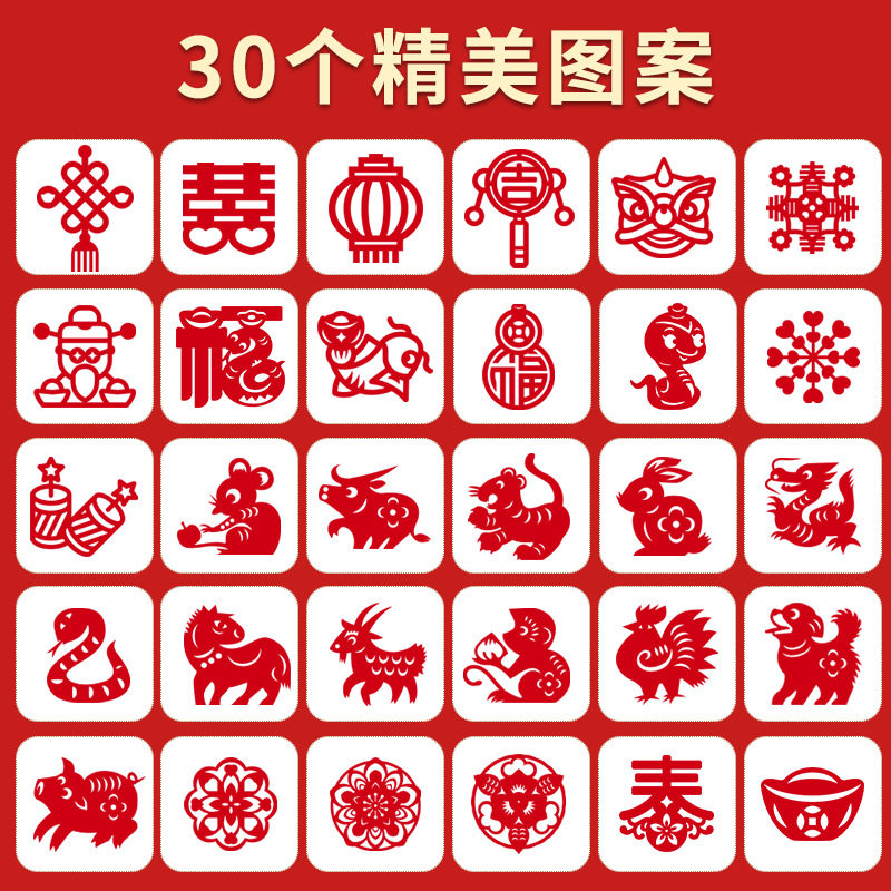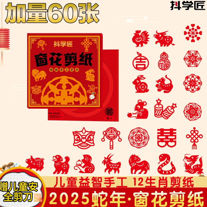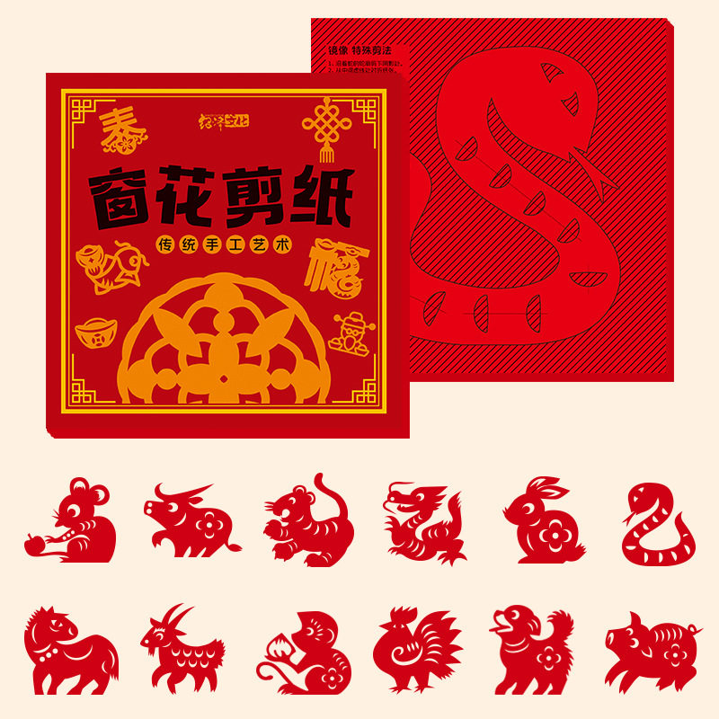 新年窗花剪纸儿童手工diy底稿图案大全专用纸张红纸福字门贴幼儿园小学生马年春花传统春节趣味套装 半成品6岁