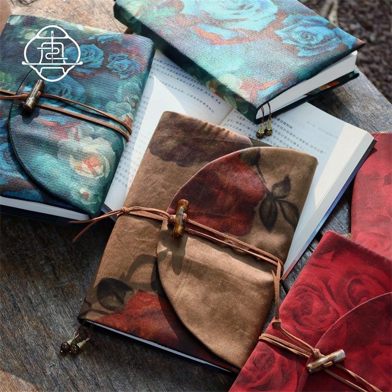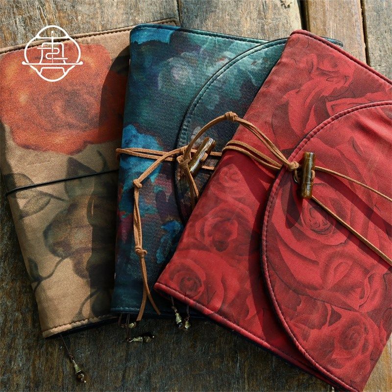 真我 非遗桑蚕丝手账手工布书衣日记本笔记本a5a6 中古玫瑰香云纱