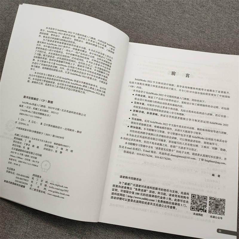 北京兆迪科技机械工业出版 RT正版 9787111735090 2022中文版 社计算机与网络书籍 SolidWorks快速入门教程