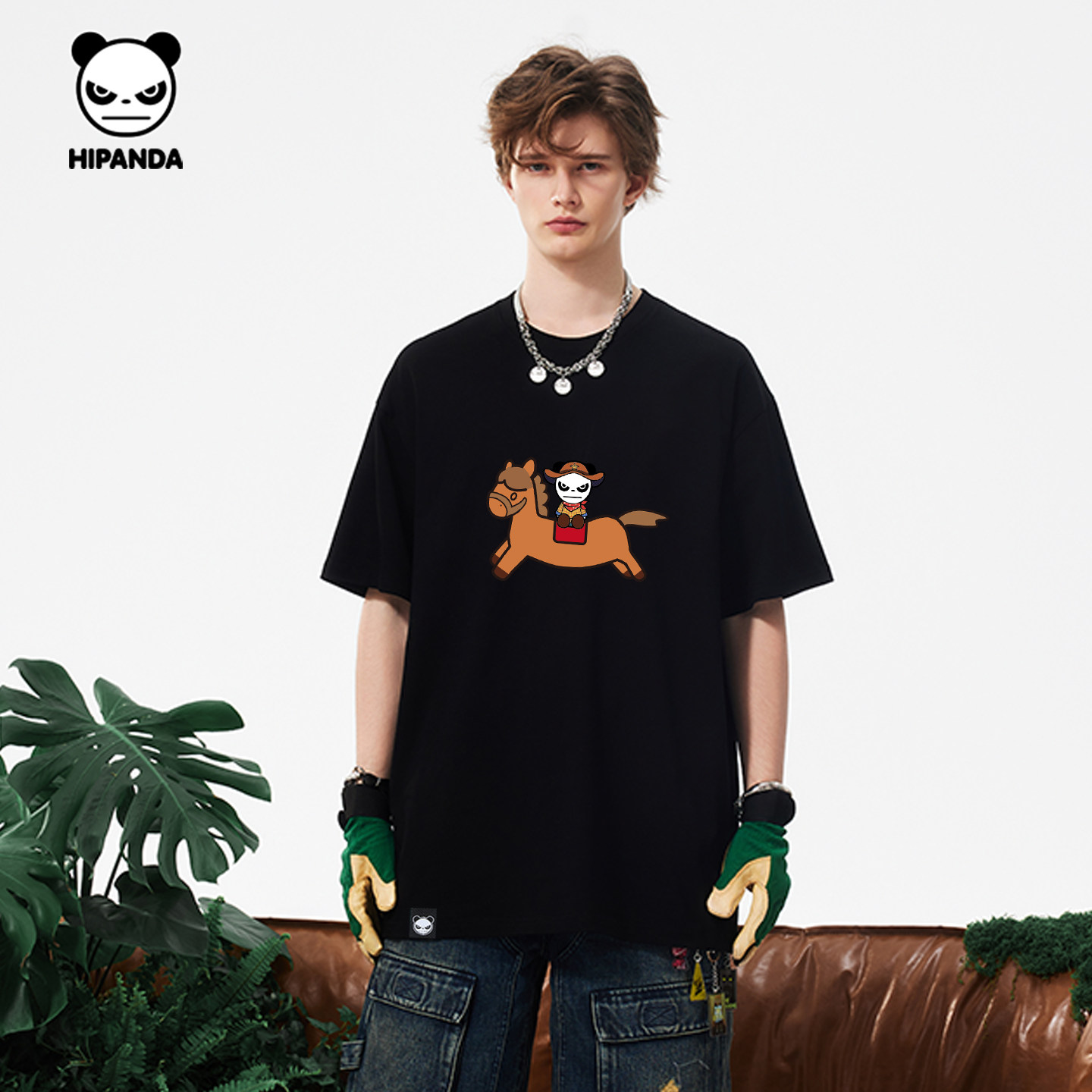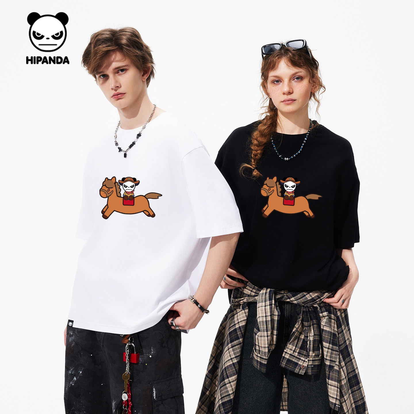 Hipanda你好熊猫国潮复古马年限定纯棉T恤情侣装 2026本命年短袖