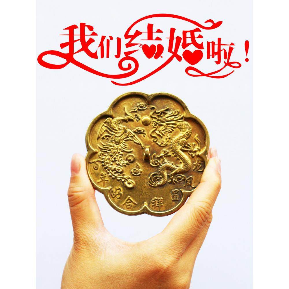 新娘新郎结婚小怀镜龙凤呈祥照妖镜圆形八卦铜镜挂腰铜镜 包邮