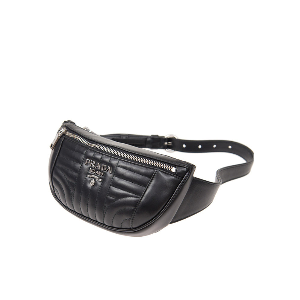 黑色 PRADA SS2021 1BL0082D91F0002 衍缝设计银色log 女士斜挎包