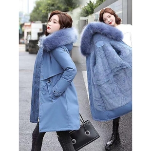 冬季 羽绒服女款 派克服内胆厚外套斜门襟可拆卸毛领短款 FDR官方店