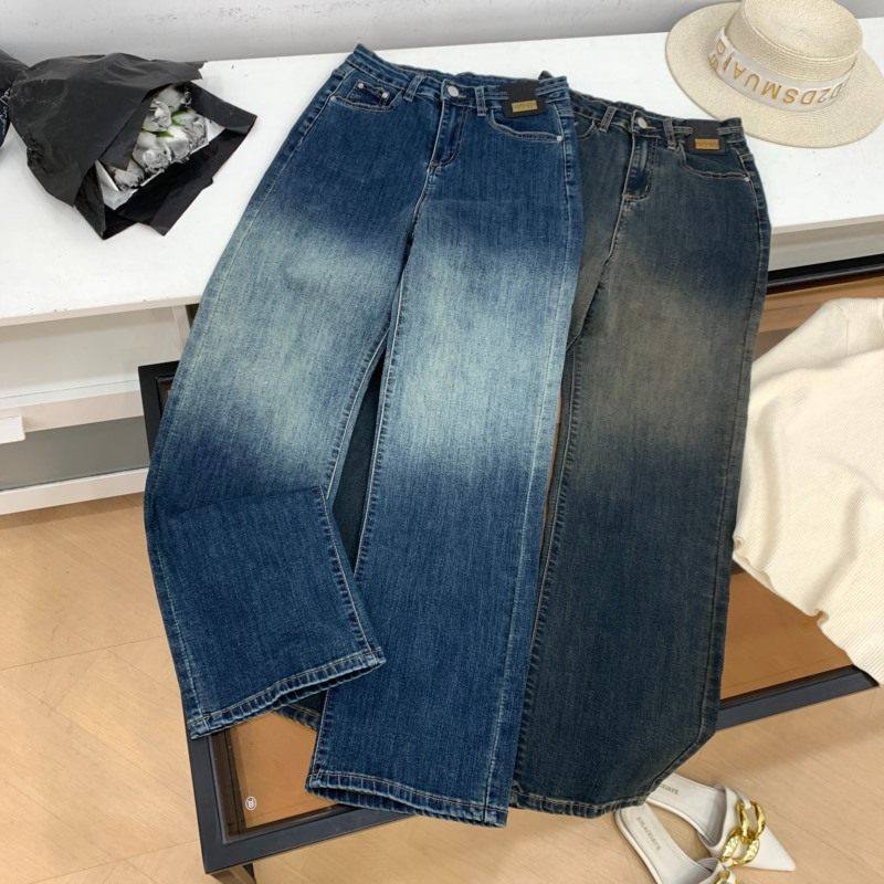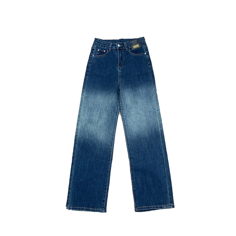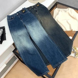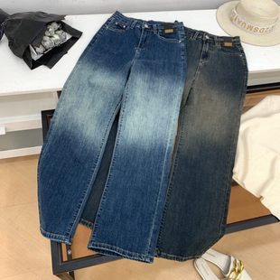 复古阔腿牛仔裤 美式 女春新款 水洗蓝宽松显瘦垂感直筒裤 楠