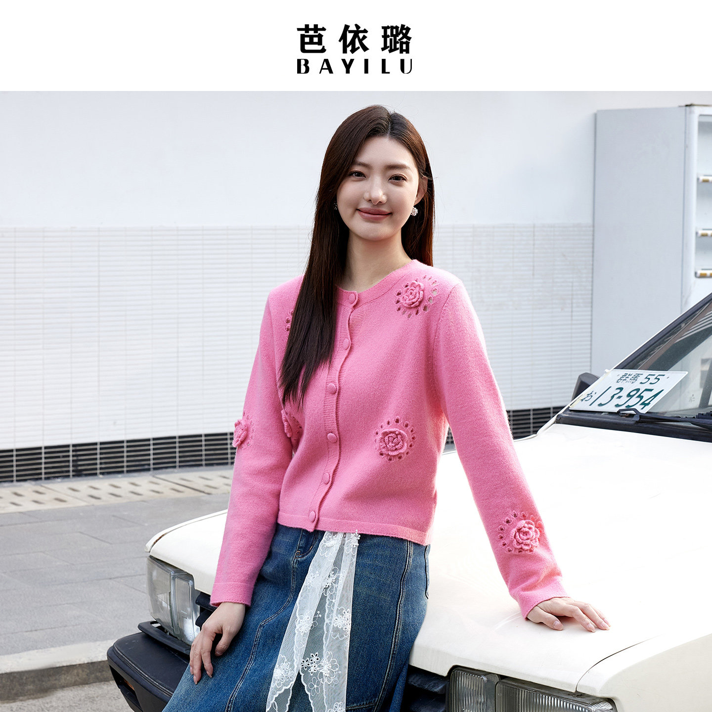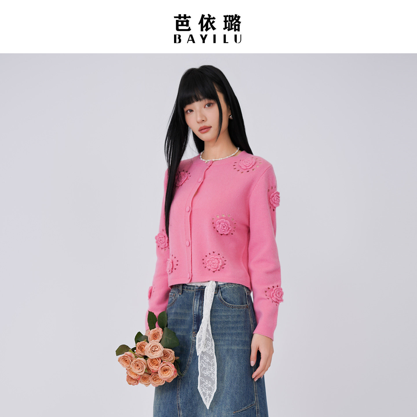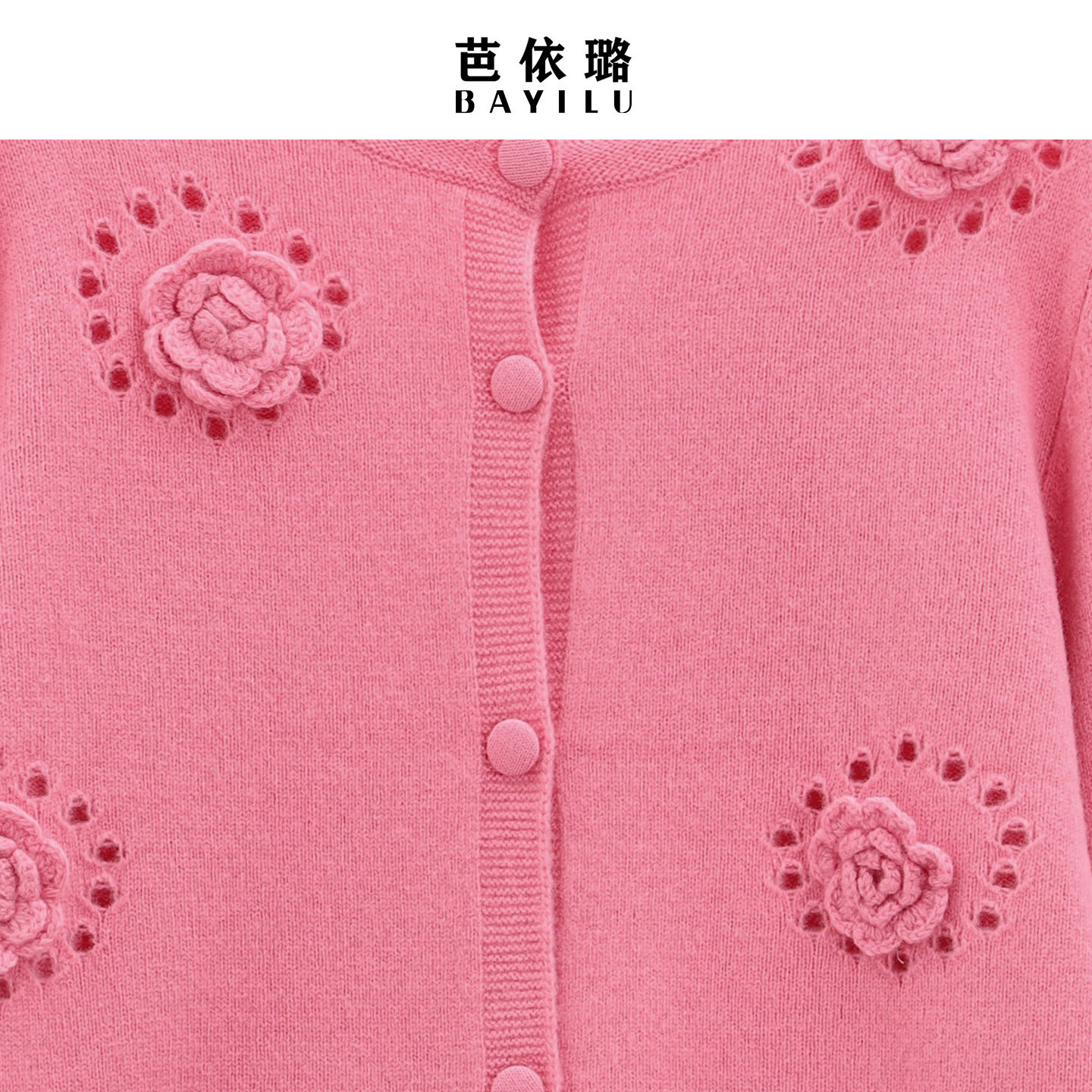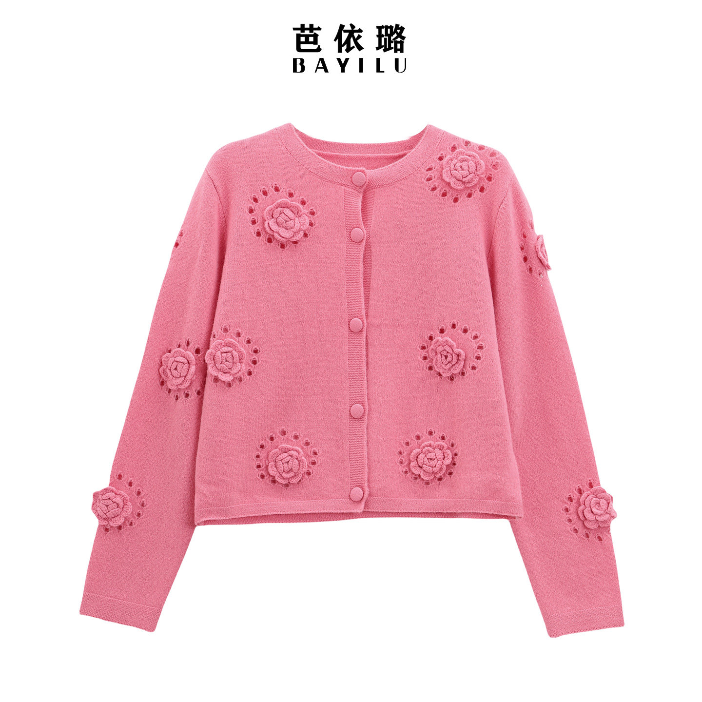 柔软韩版 毛衣针织衫 立体花朵装 饰温柔长袖 芭依璐2026春季 开衫 新品