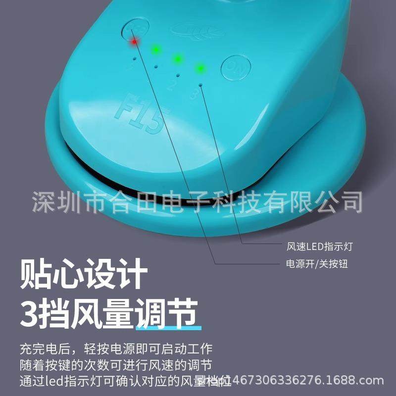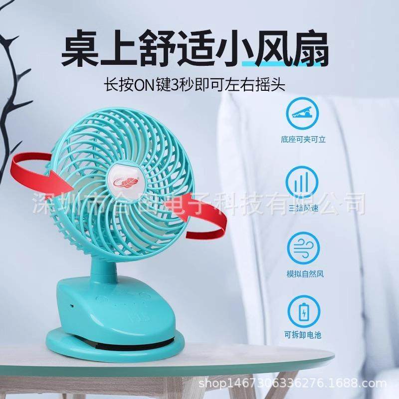 共田F15自动摇头小型电风扇USB充电桌面台式 容量大风力夹子小风扇