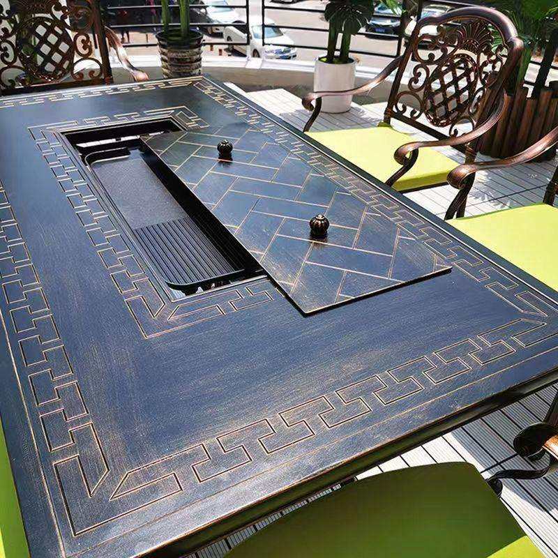 野餐 桌子套装 户外烧烤桌椅组合电烤炉蛋卷桌欧式 无烟瓷砖便携式