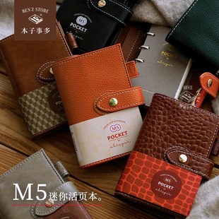 M5活页本 珍软面皮A8随身迷你5孔铁夹复古收纳手帐笔记本62内页 袖