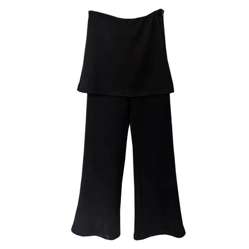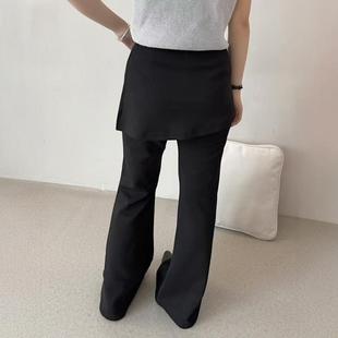 韩系叠穿显瘦遮胯休闲裙裤 新款 女高腰2025春季 假两件屁帘微喇叭裤