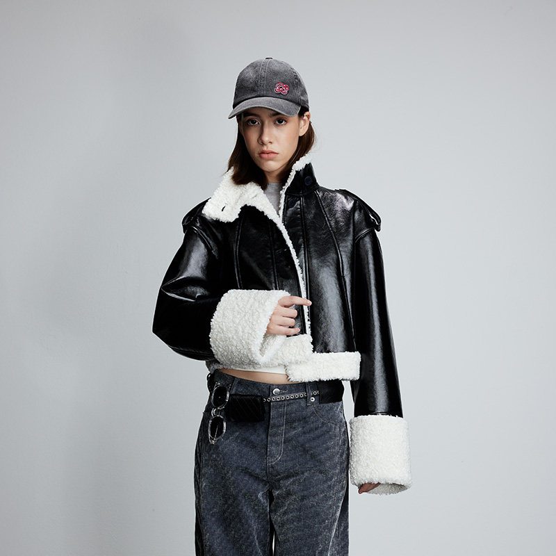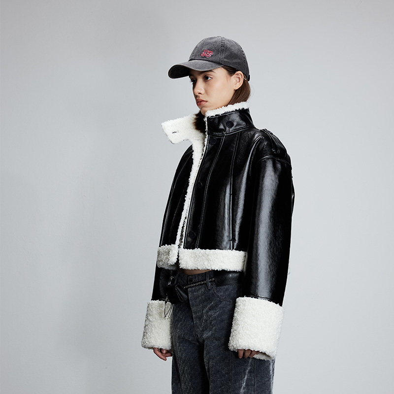 简约短外套银泰百货 JAC 女士黑色立领时尚 新款 301489 FLEURANT