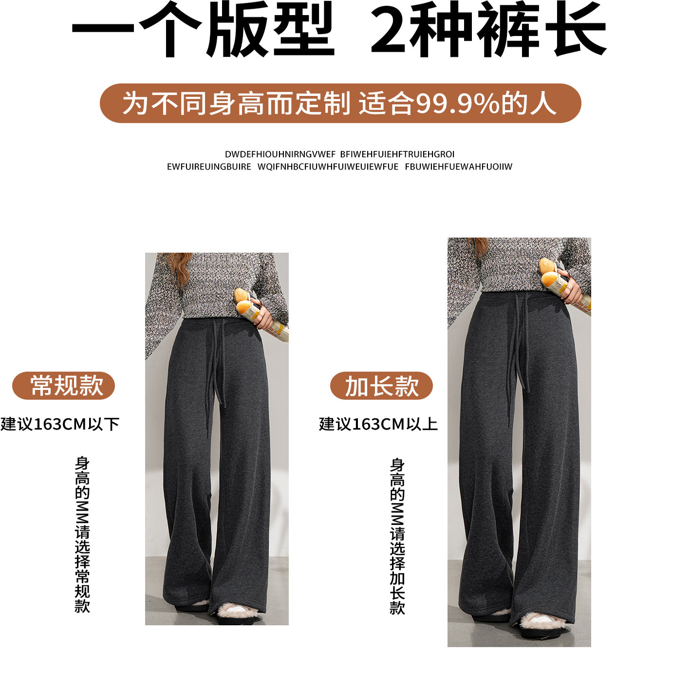 直筒裤 女2025新款 冬 垂坠感软糯加绒加厚阔腿裤 东北旅游灰色糯米裤