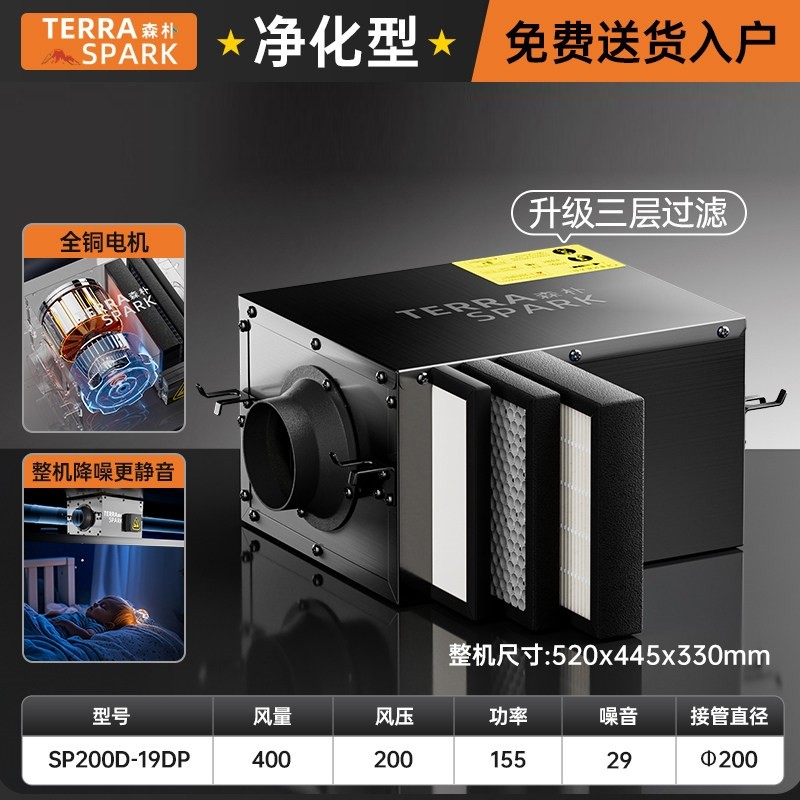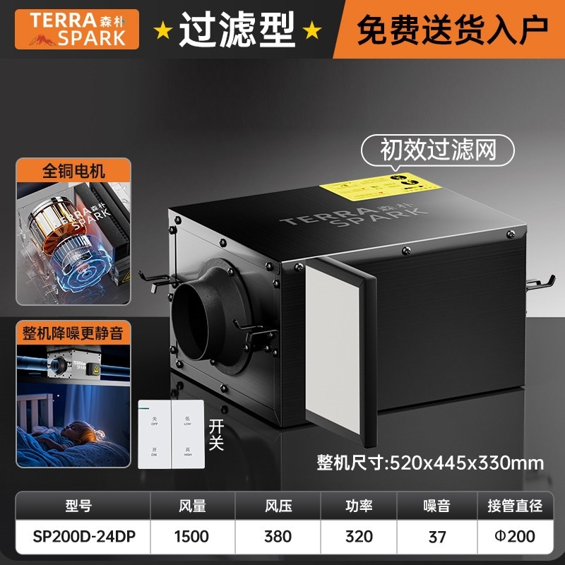 新风系统商用强力静音管道排风机用净化抽风排气扇单向流换气机家