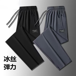 弹力速干运动裤 薄款 透气宽松直筒裤 夏季 长裤 男士 大码 男 冰丝休闲裤
