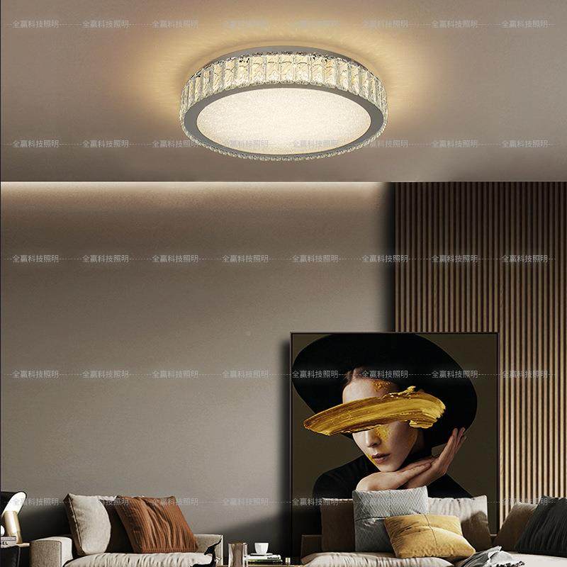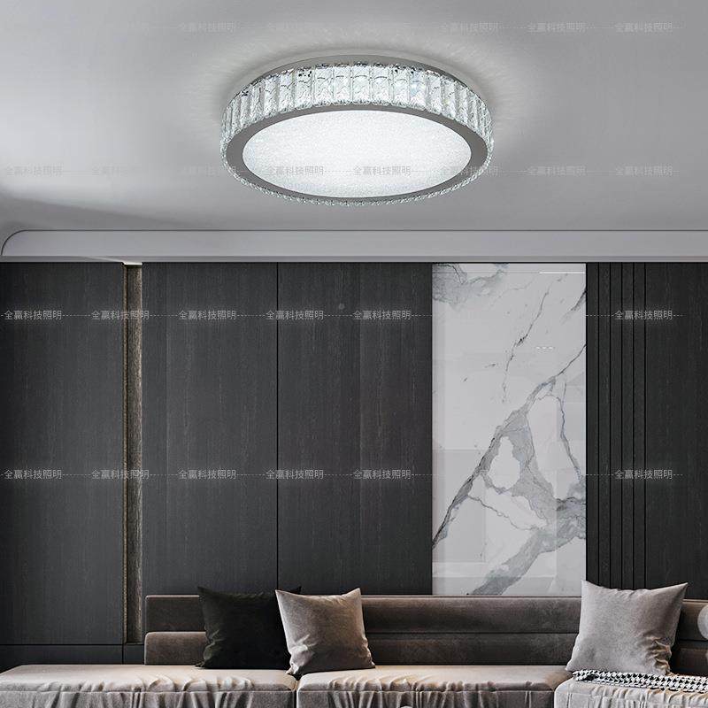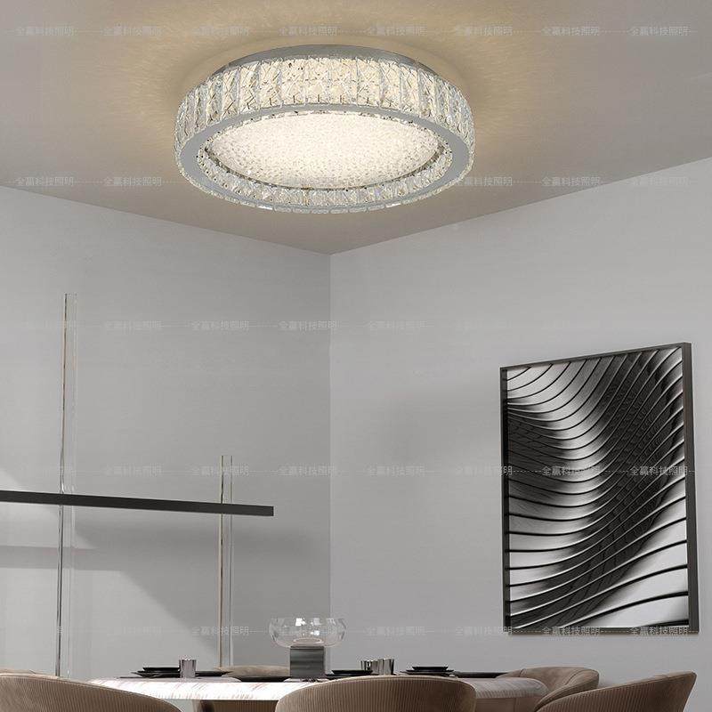 圆卧室水晶吸顶灯现代简约形LED水晶沙书厅灯房具轻奢小客NYN餐厅
