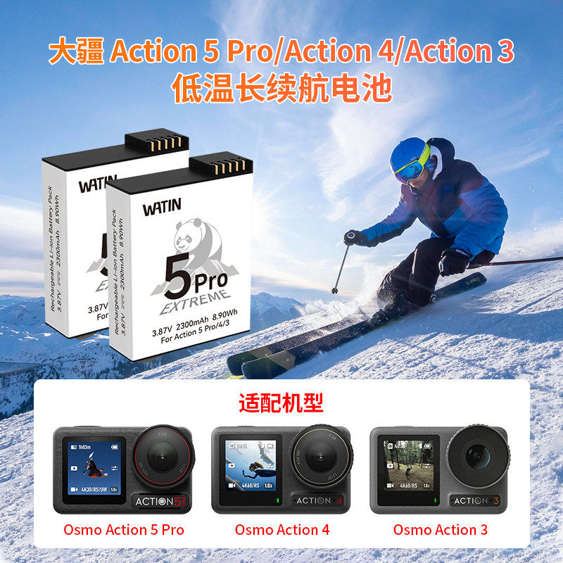 action4 3电池耐低温长续航双充充电盒Osmo 3灵眸运动相机配件电池充电 WATIN华汀适用DJI大疆Action5pro