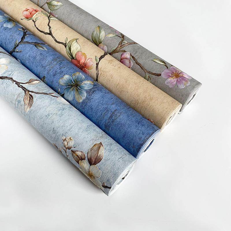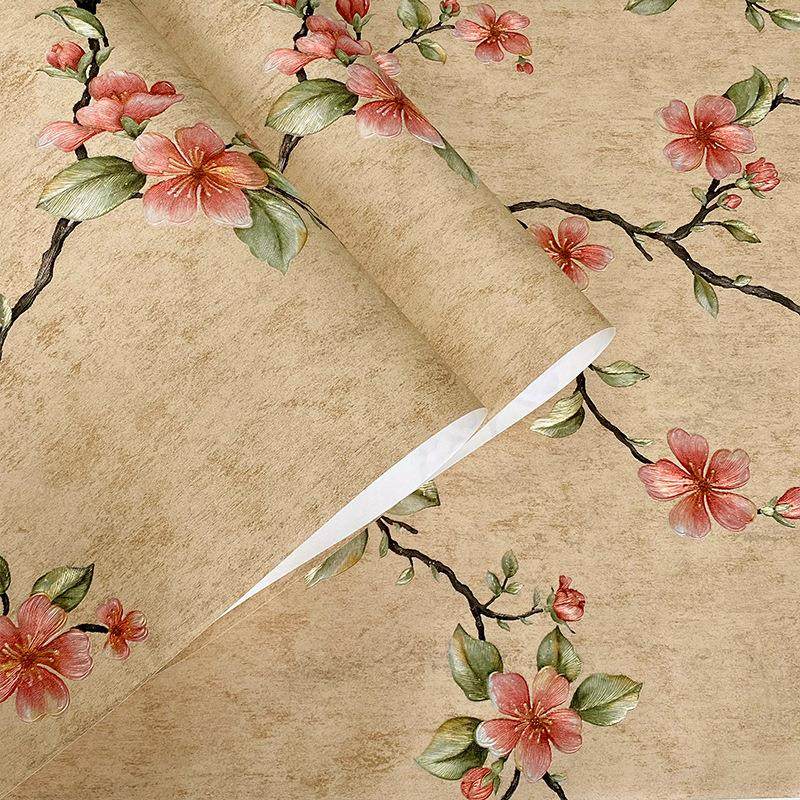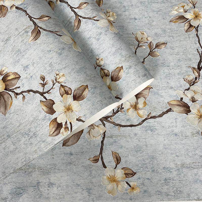 美式 饰浮雕壁纸 乡村复古风藤蔓花墙纸卧室客厅电视背景墙家用装
