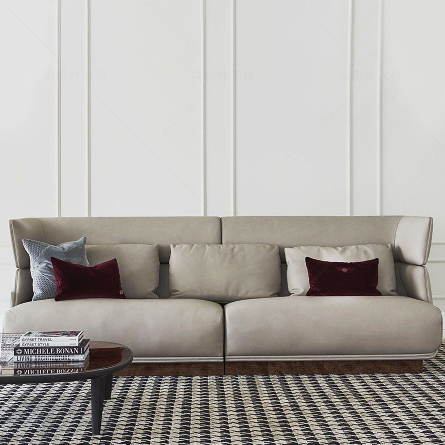 劳伦斯沙发客厅意式 极简真皮直排大户型黑色头层牛皮半青皮艺沙发
