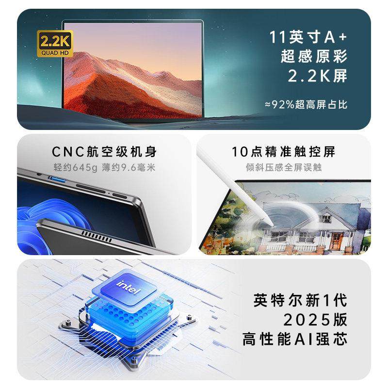DERE戴睿11英寸笔记型电脑办公平板 2K触控屏幕 Intel2025新款
