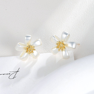 Maywct 绝美雪花钛钢耳钉女爆闪华子珍珠清冷感耳饰耳骨 冬雪恋歌