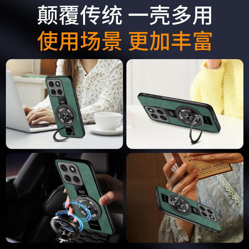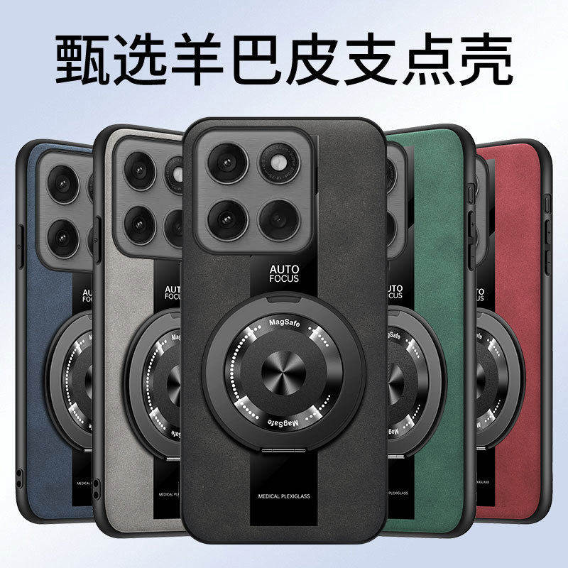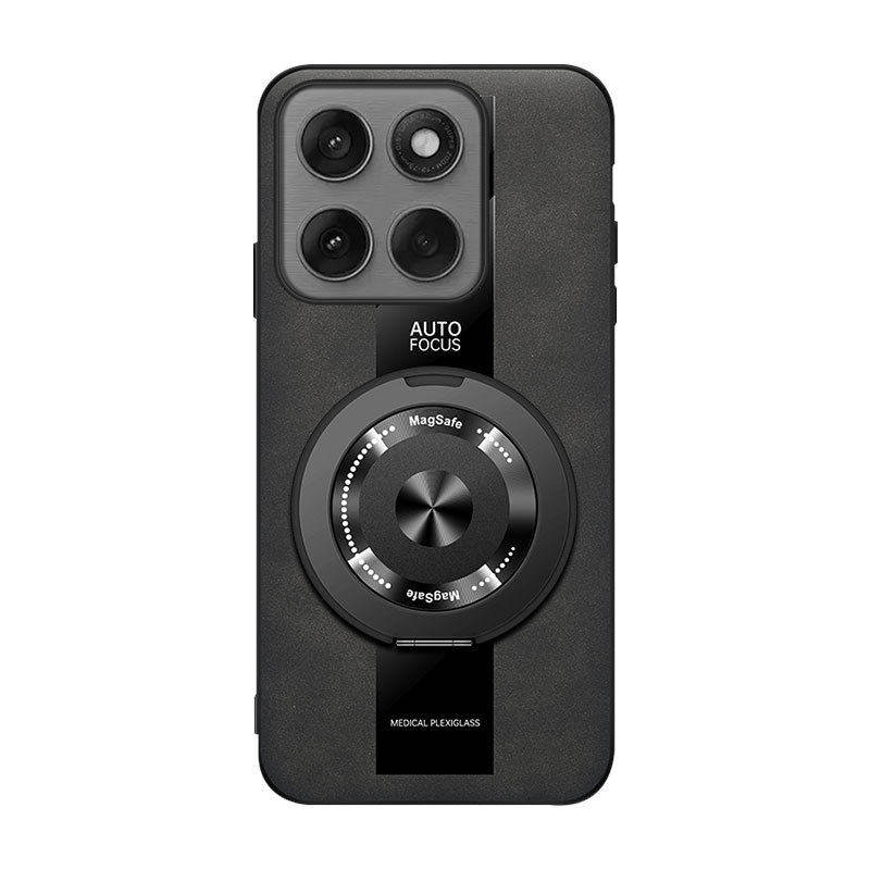 适用摩托罗拉G86手机壳防摔5G羊巴皮保护套旋转支架磁吸磨砂新款