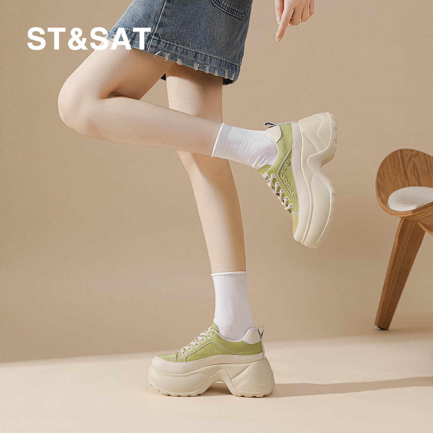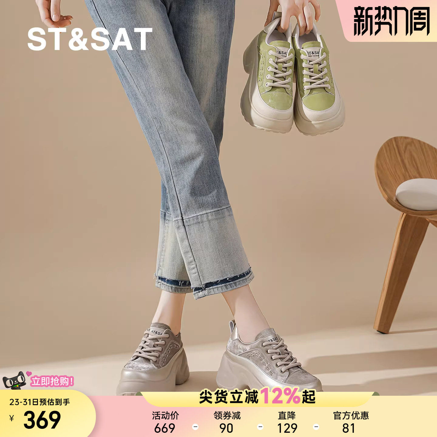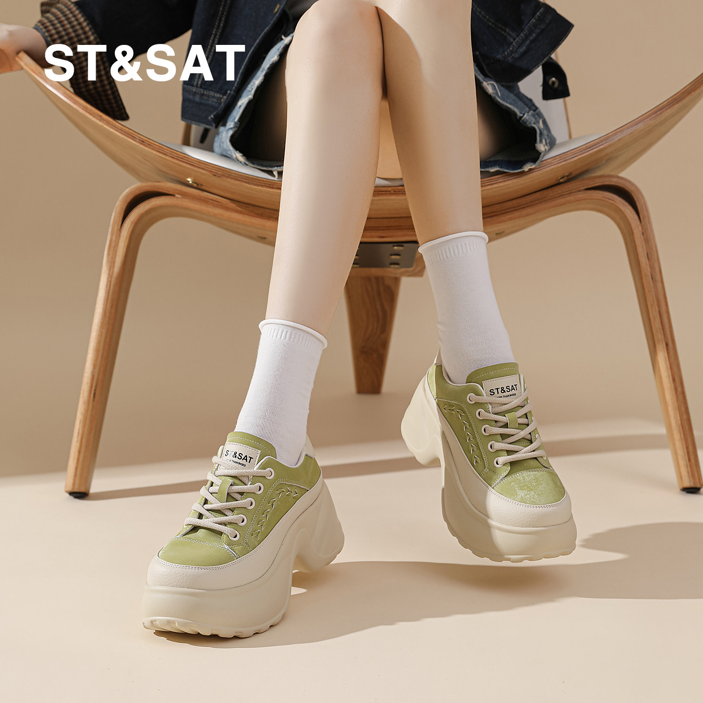 春季 新款 增高运动鞋 小个子时尚 子 星期六厚底女鞋 复古松糕鞋 休闲鞋