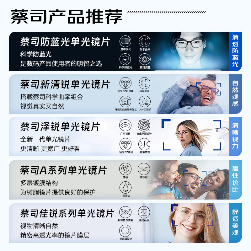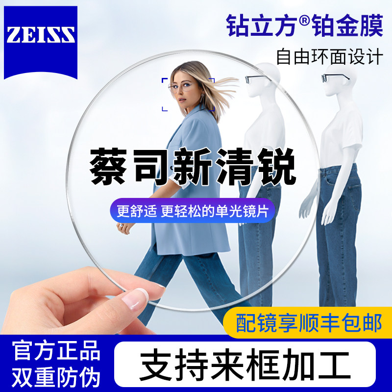 蔡司泽锐镜片1.74超薄钻立方新清锐防蓝光铂金膜变色1.67配近视