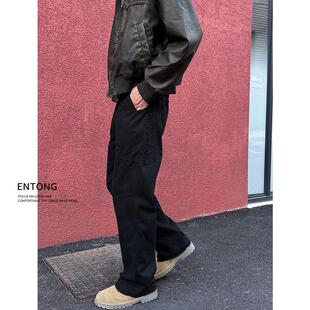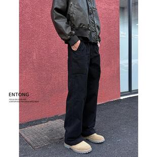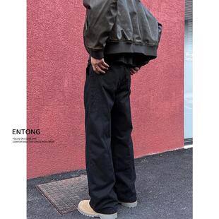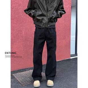 男生高级感痞帅宽松直筒微喇裤 裤 高街vibe黑色休闲工装 Entong美式
