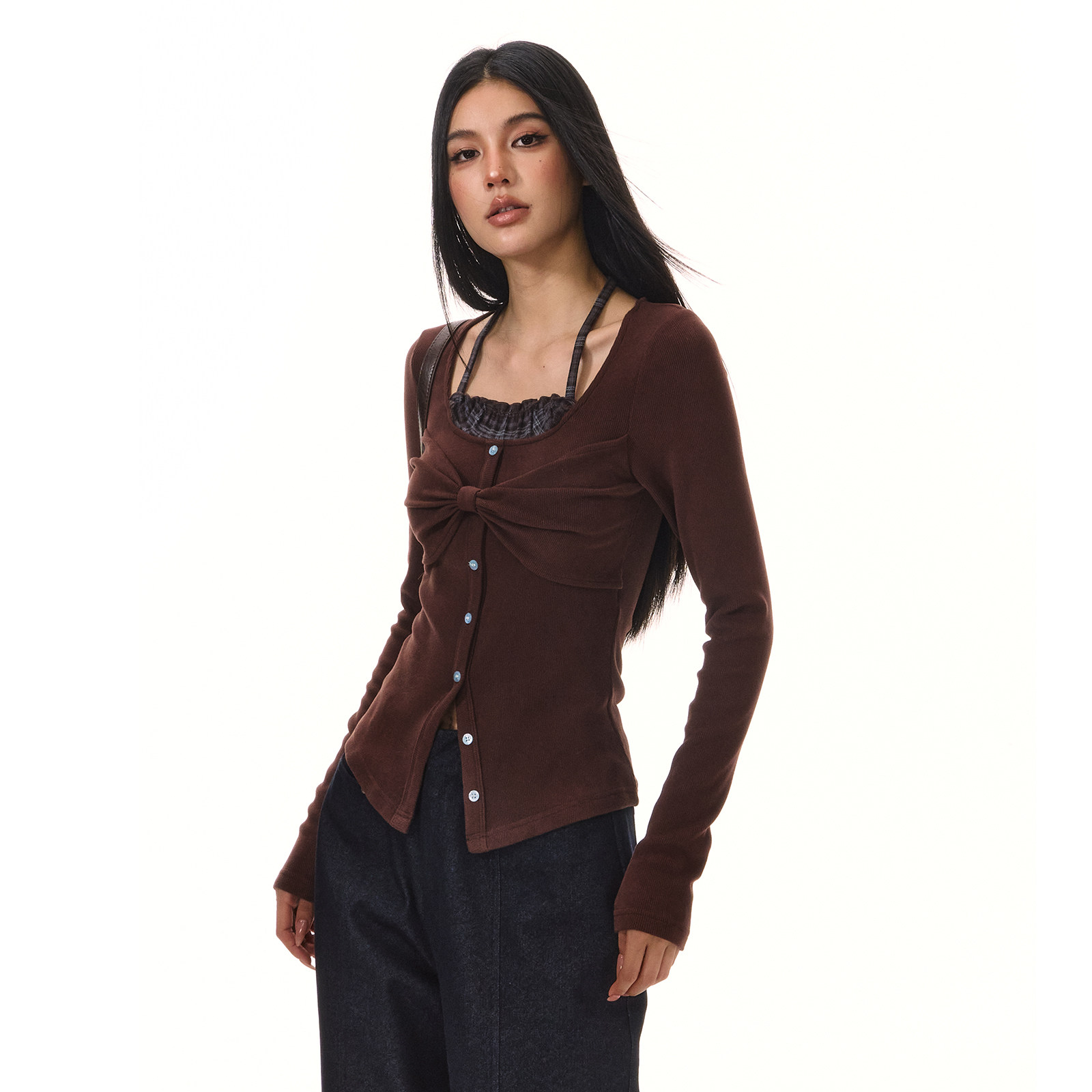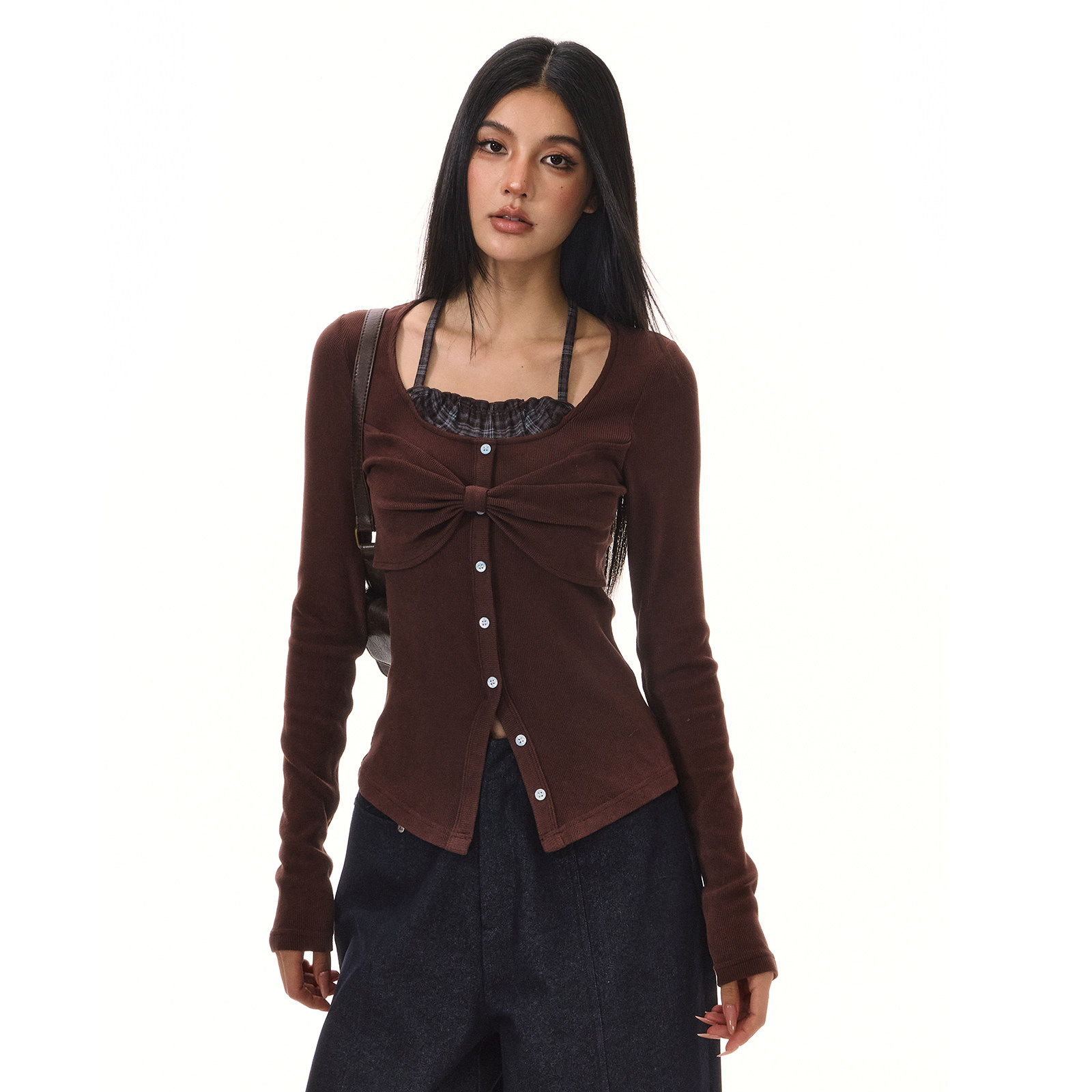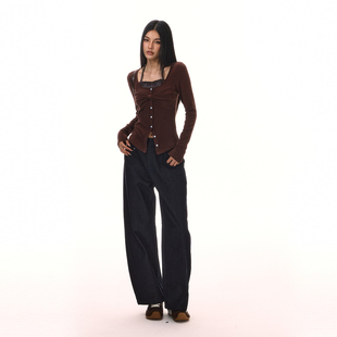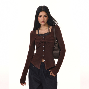 显瘦小众设计感上衣女款 新款 女秋季 ACMEAURA韩系假两件挂脖针织衫