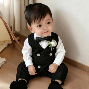 男宝宝周岁礼服帅气花童小西装 潮 加绒抓周百天宴衣服男童生日套装
