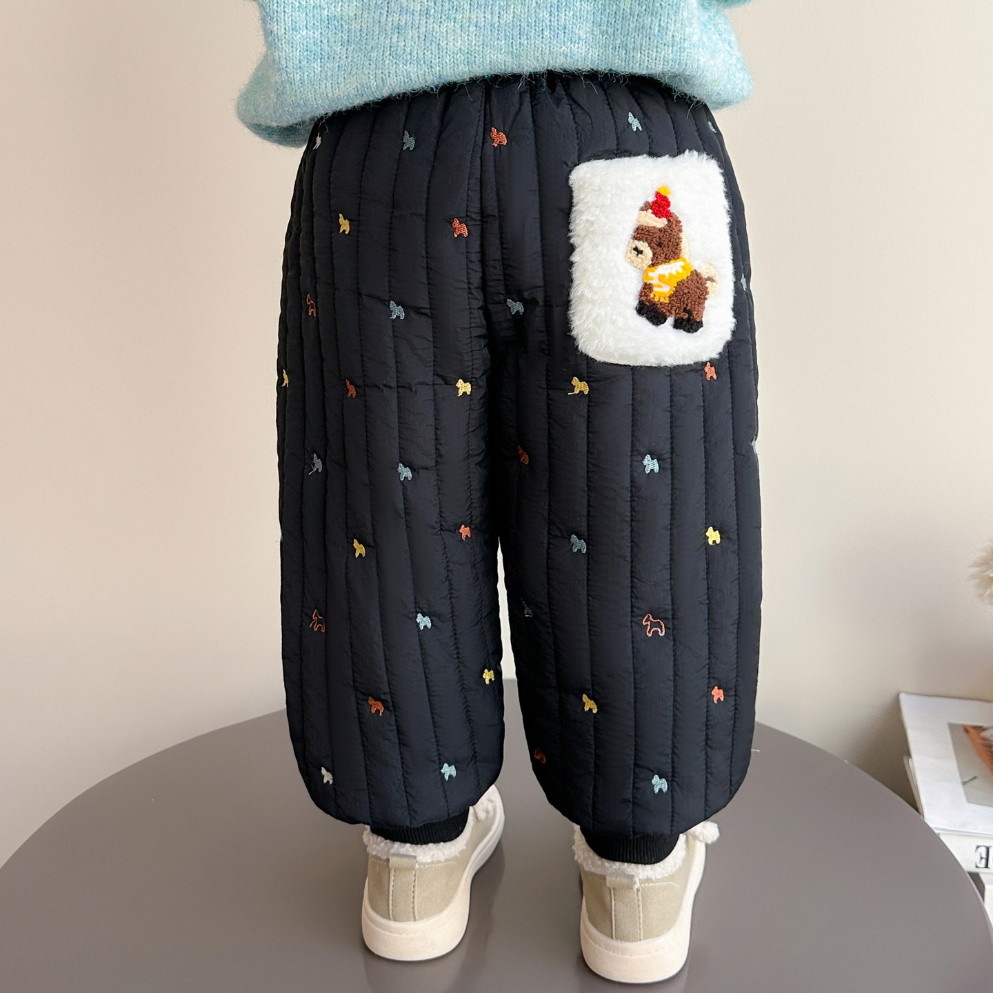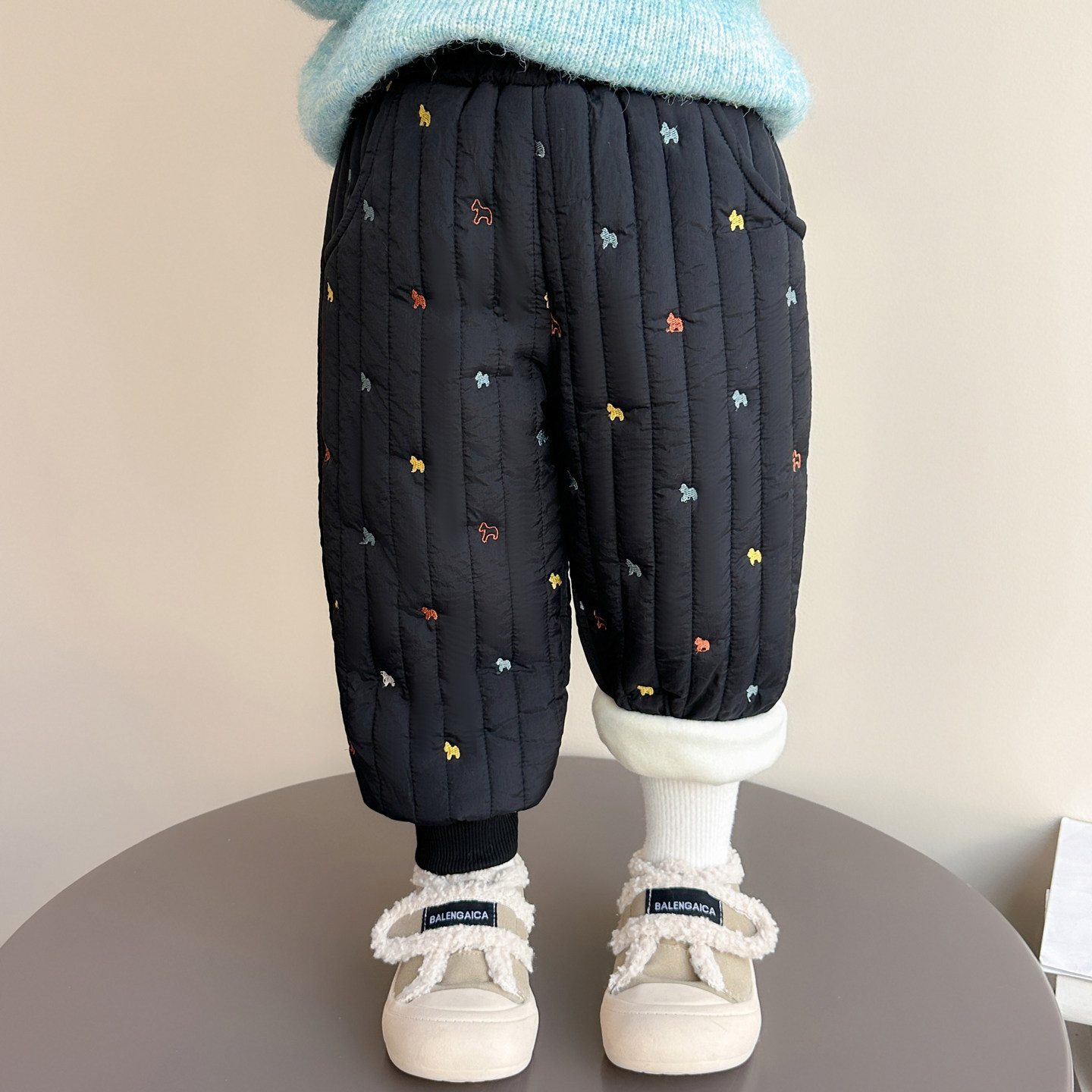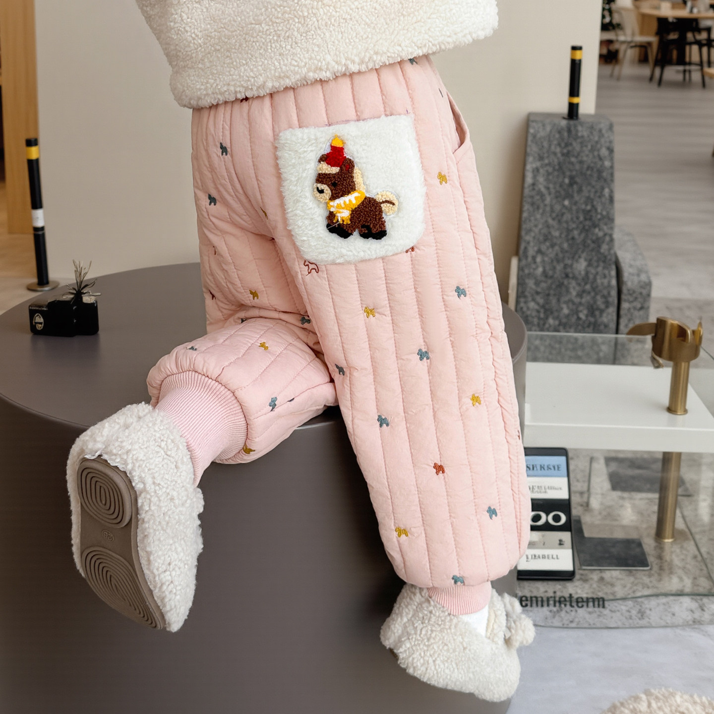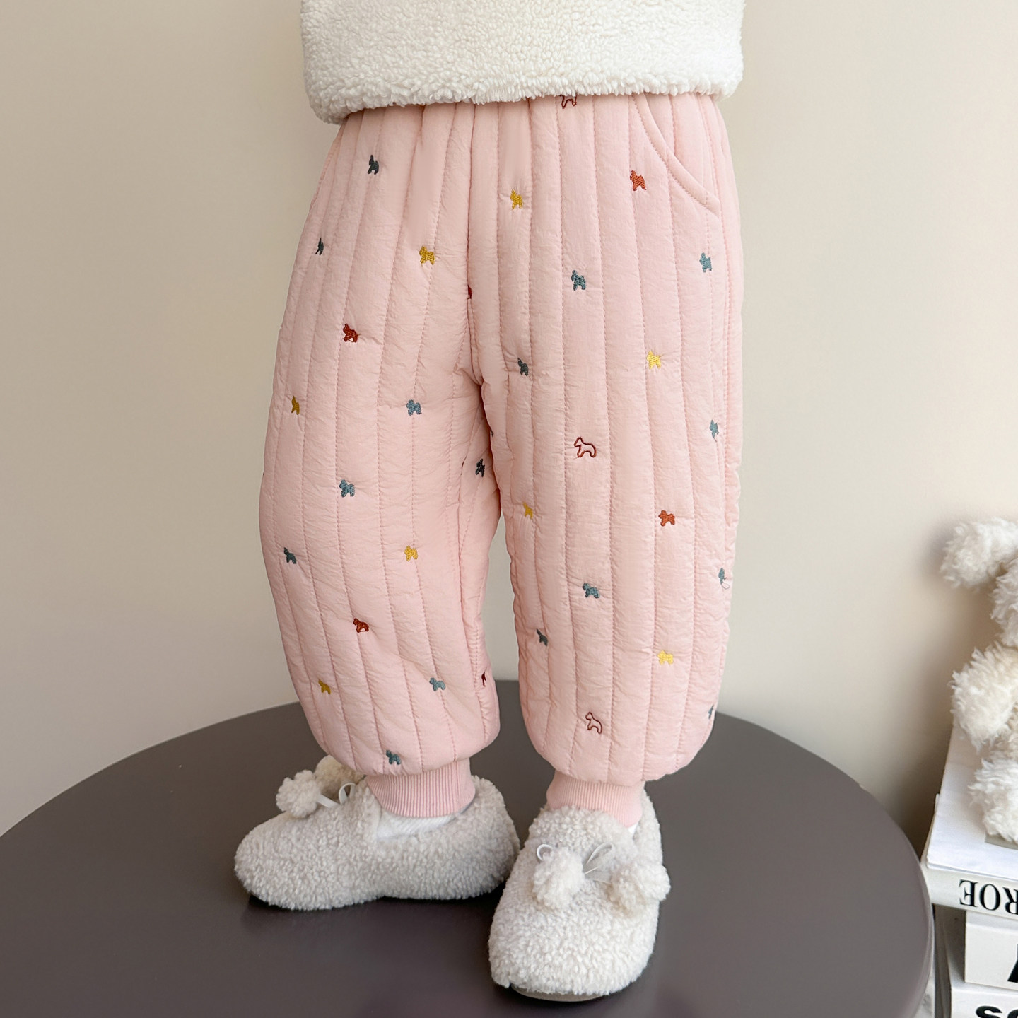 棉裤 一条过冬女童加绒裤 女宝宝冬装 三层夹棉加厚儿童束脚裤 子冬季