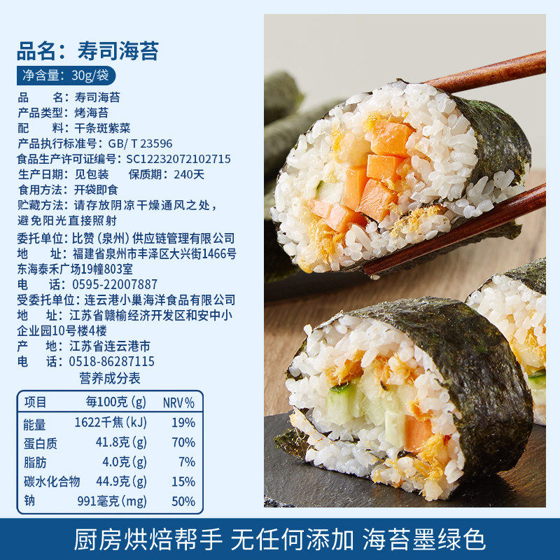 比比赞寿司海苔片专用紫菜饭团食材肉松小零食小吃休闲食品批大片
