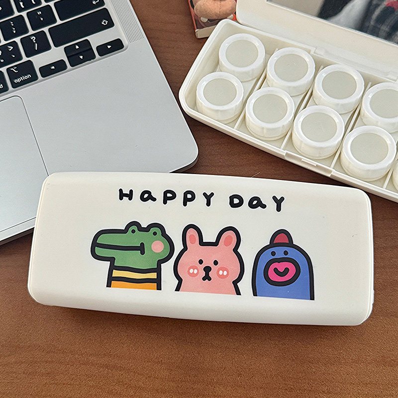 ins风搞怪小动物五副装 简约美瞳盒隐形眼镜伴侣盒护理盒日抛收纳
