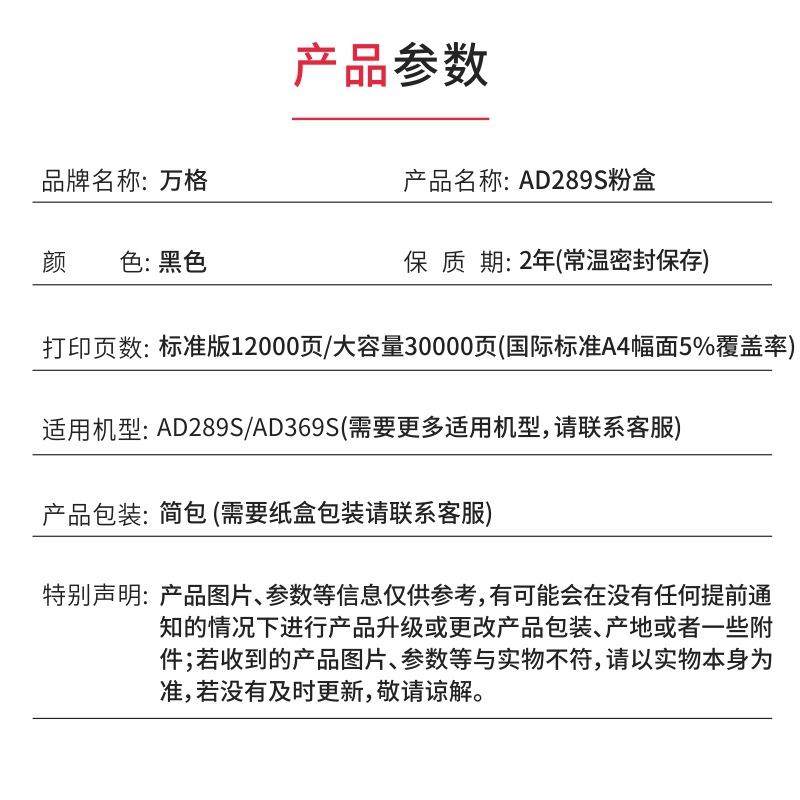 震旦AD289S AD369S碳粉 AD369S 震旦289S碳粉盒AD289S粉盒 适用