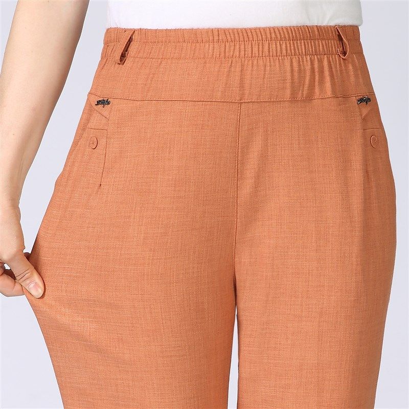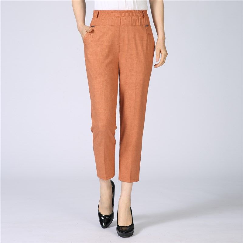 中老年女裤 棉麻八分中裤 宽松休闲裤 高腰直筒裤 妈妈裤 七分裤 子夏季