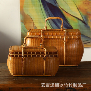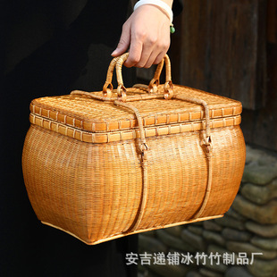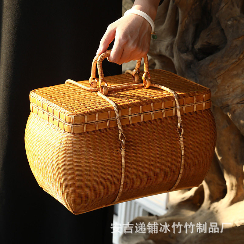 手工竹编夏梦大漆茶具收纳箱竹编手提包便携出行手工精编茶人藤箱