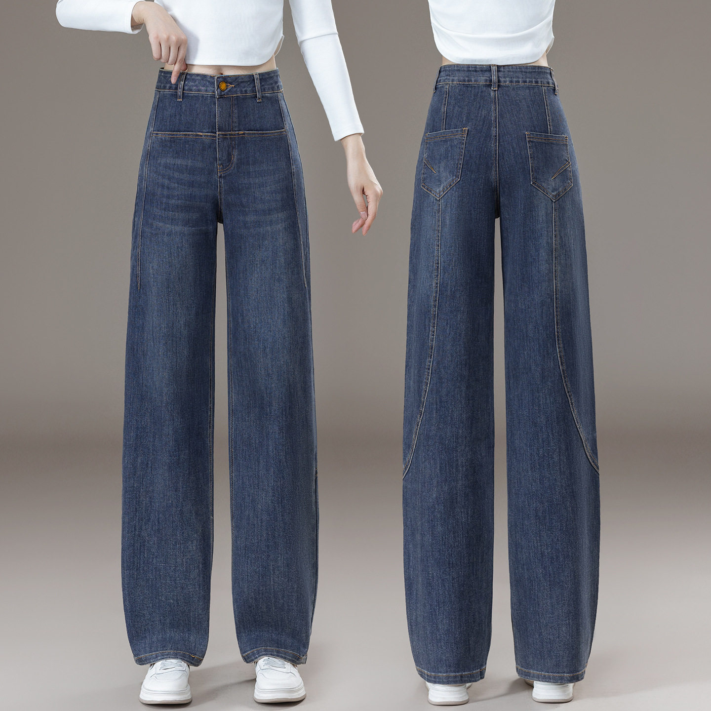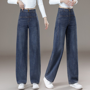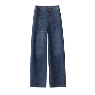 垂感阔腿百搭直筒显瘦裤 饭饭又饿了复古水洗工装 款 女秋季 子 牛仔裤