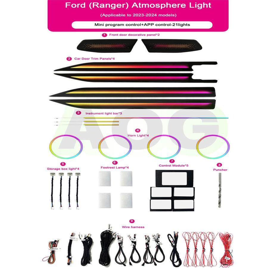 适用于23 24福特游骑侠ranger氛围灯车内动态幻彩内饰气氛灯改装