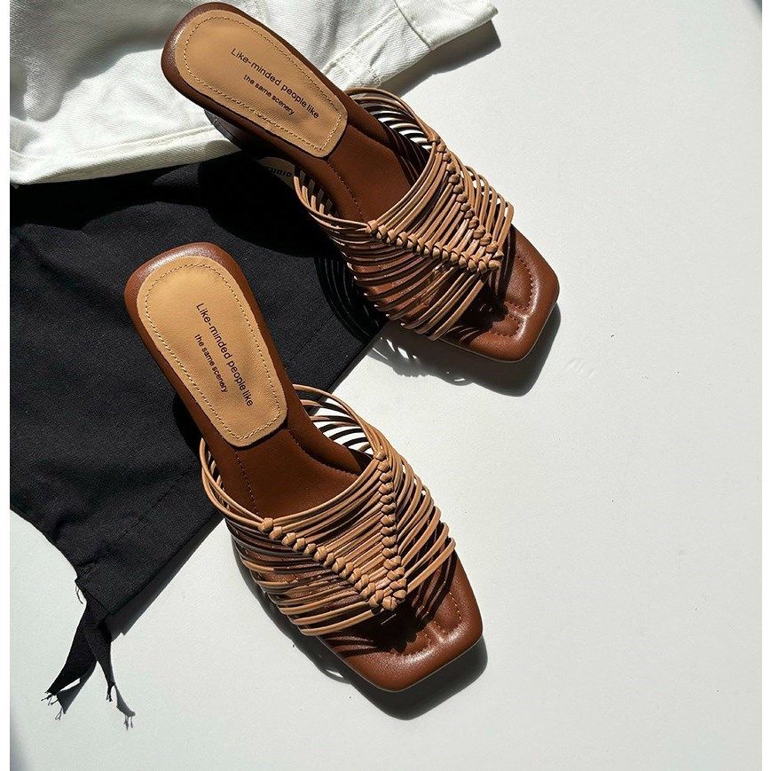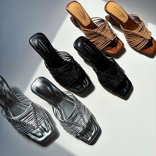 女夏季 温柔ins厚底拖鞋 外穿防滑沙滩一字拖 法式 波西米亚海岛风