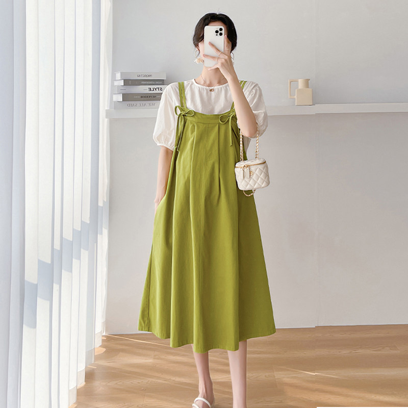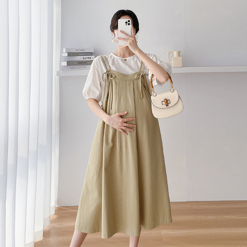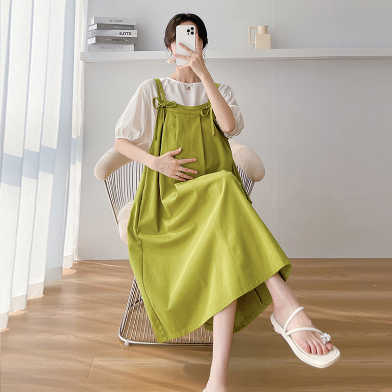 套装 洋气网红孕妇装 裙子宽松遮肚不显怀背带裙 时尚 孕妇连衣裙夏款