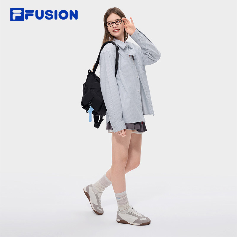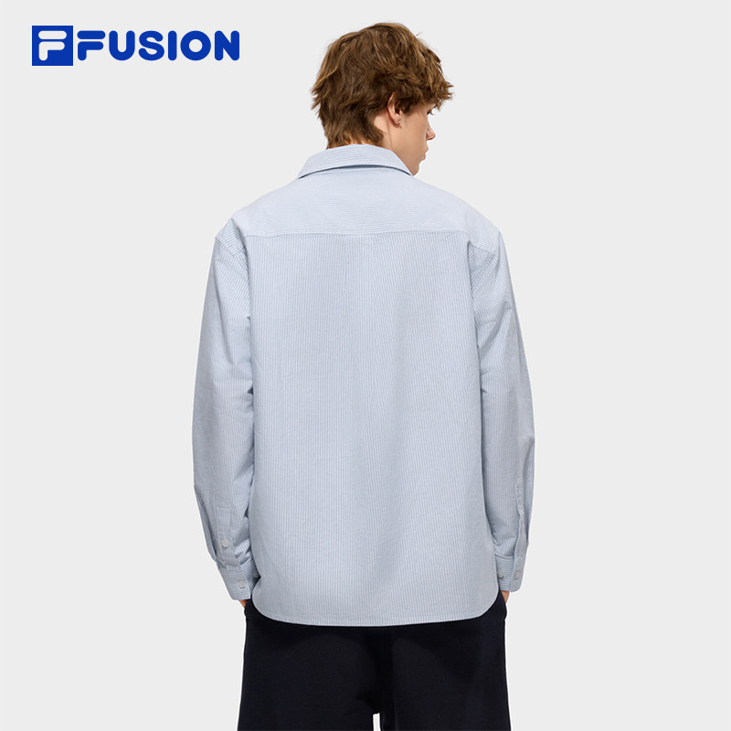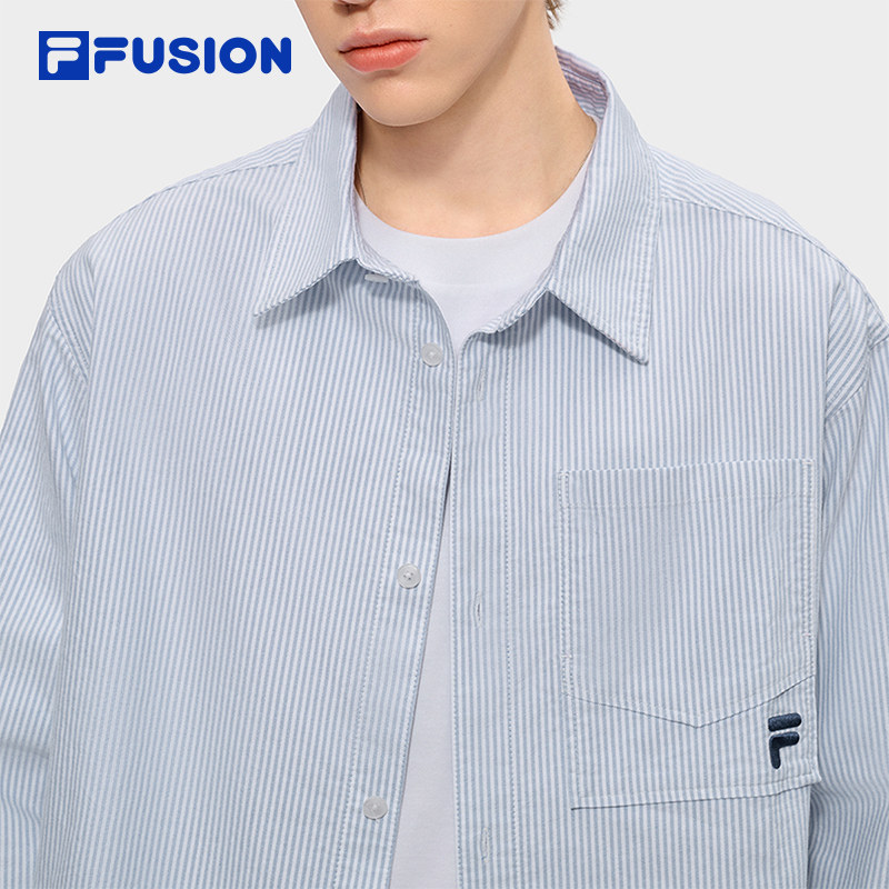 新款 FILA 2026夏季 衬衫 长衬条纹宽松上衣 FUSION斐乐潮牌情侣长袖